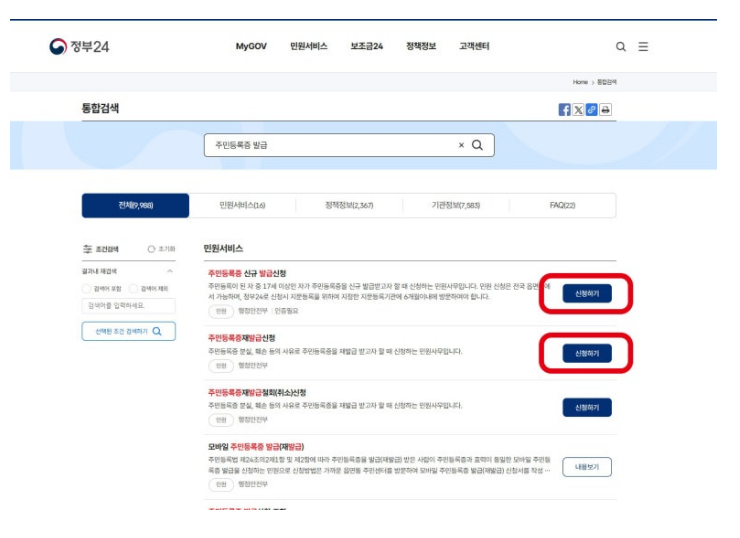 STEP 2. '주민등록증 발급' 검색 후 서비스 선택